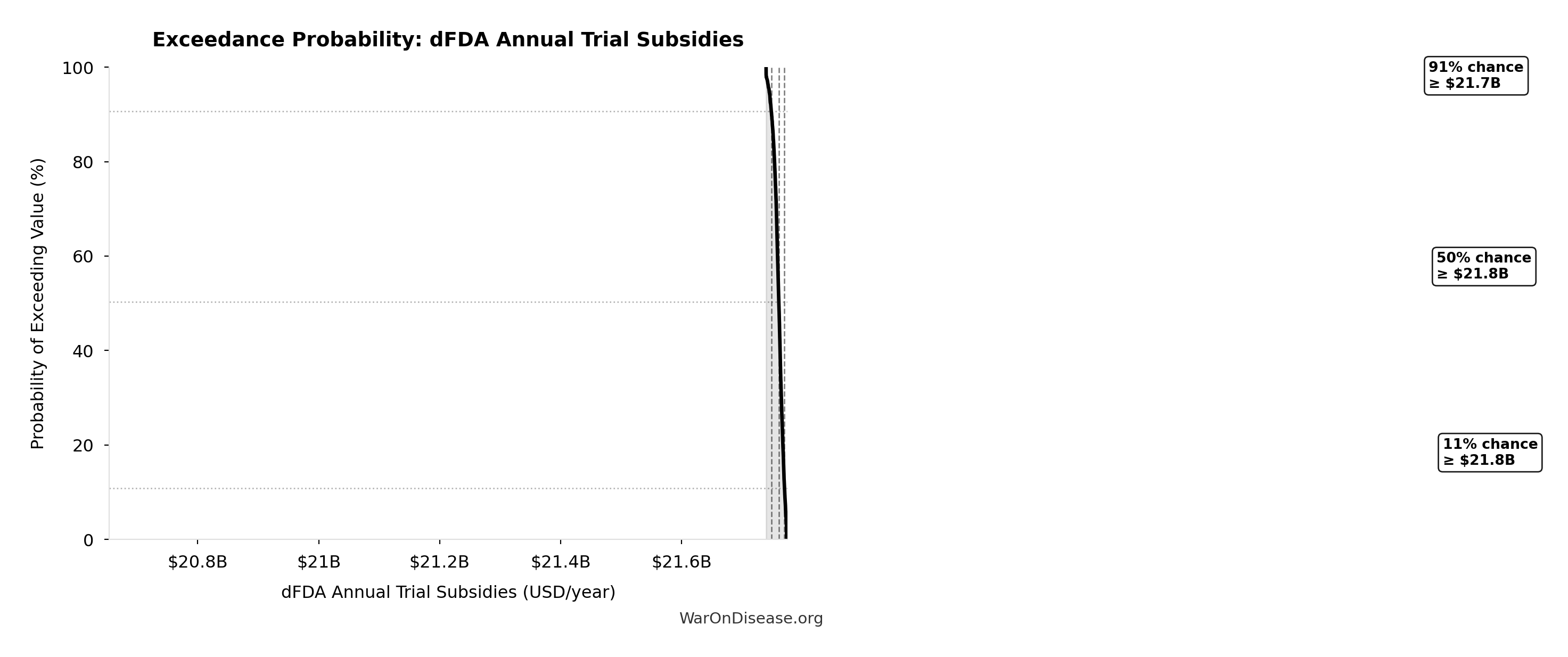 Assumed annual funding for dFDA pragmatic clinical trials (~$21.8B/year). Source-agnostic: could come from military reallocation, philanthropy, or government appropriation.