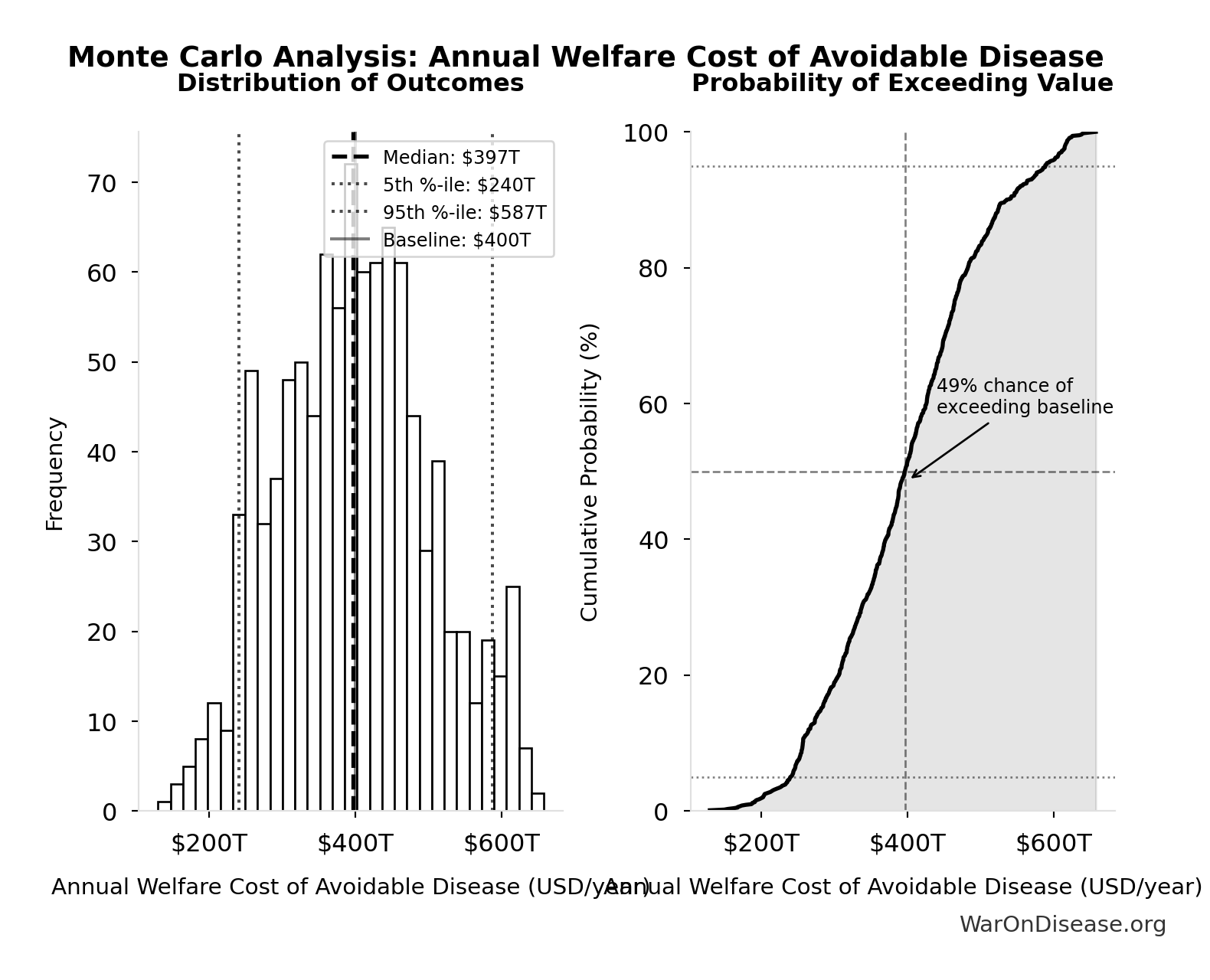 What this means: There’s significant uncertainty here. The true value likely falls between $150M and $350M (±44%). This represents a wide range that our Monte Carlo simulations account for when calculating overall uncertainty in the results.