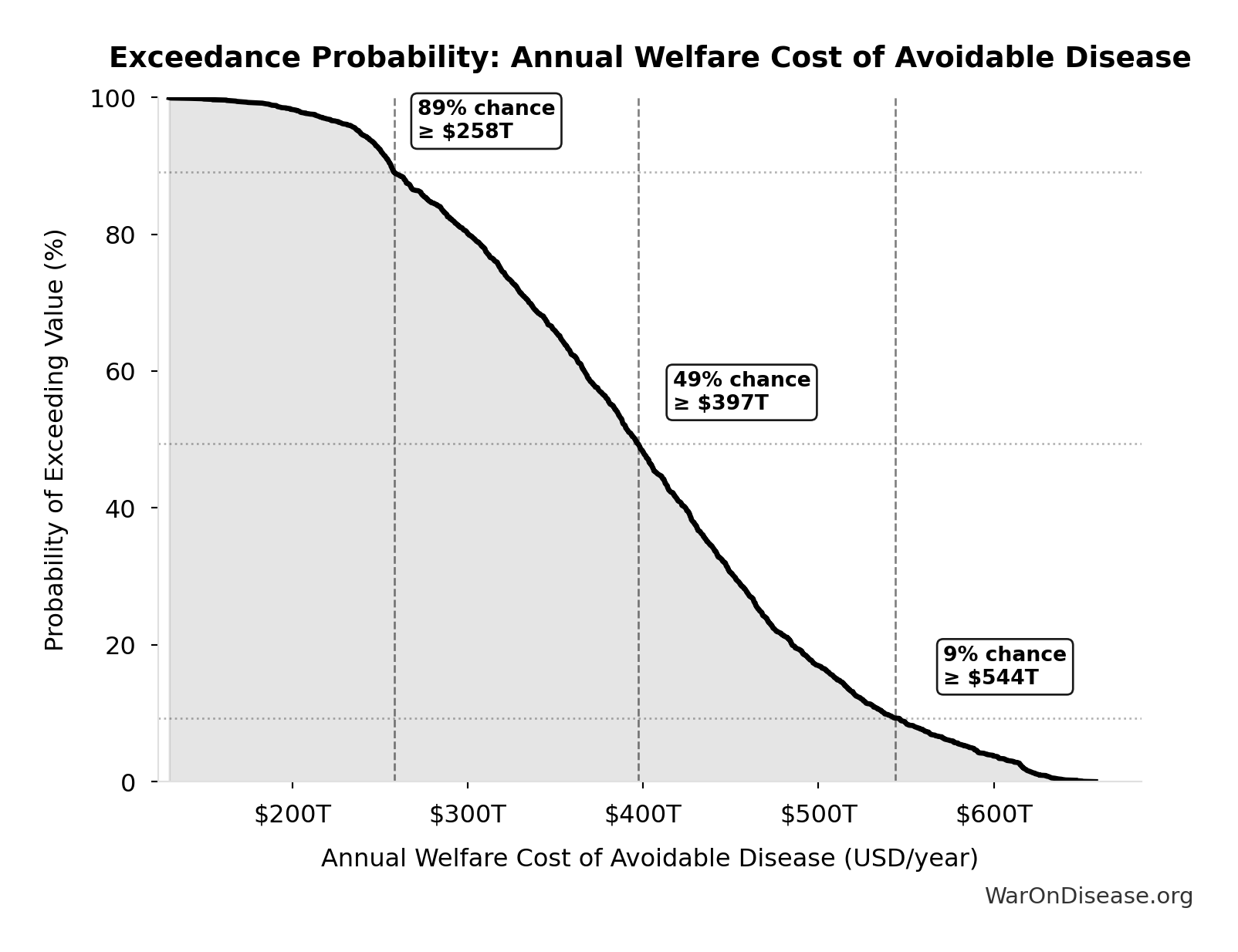 This exceedance probability chart shows the likelihood that Total Annual Decentralized Framework for Drug Assessment Operational Costs will exceed any given threshold. Higher curves indicate more favorable outcomes with greater certainty.