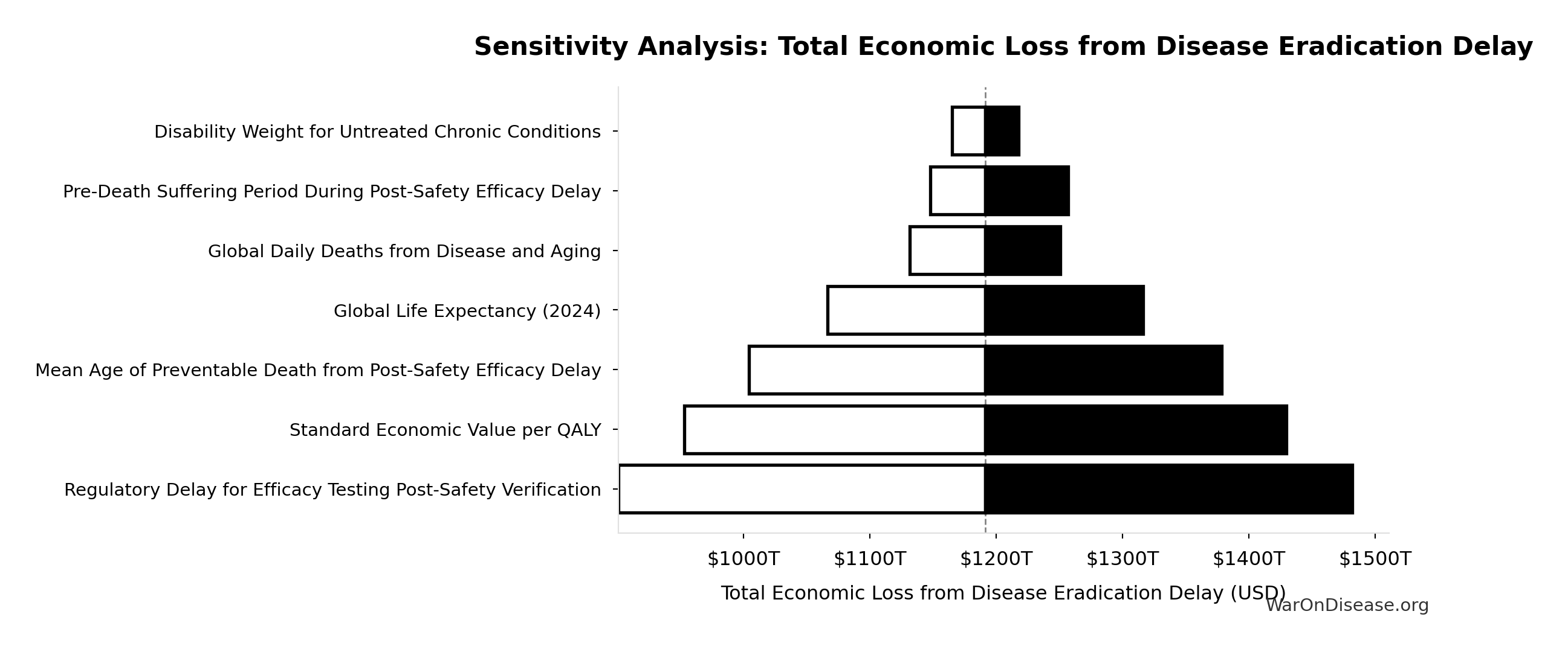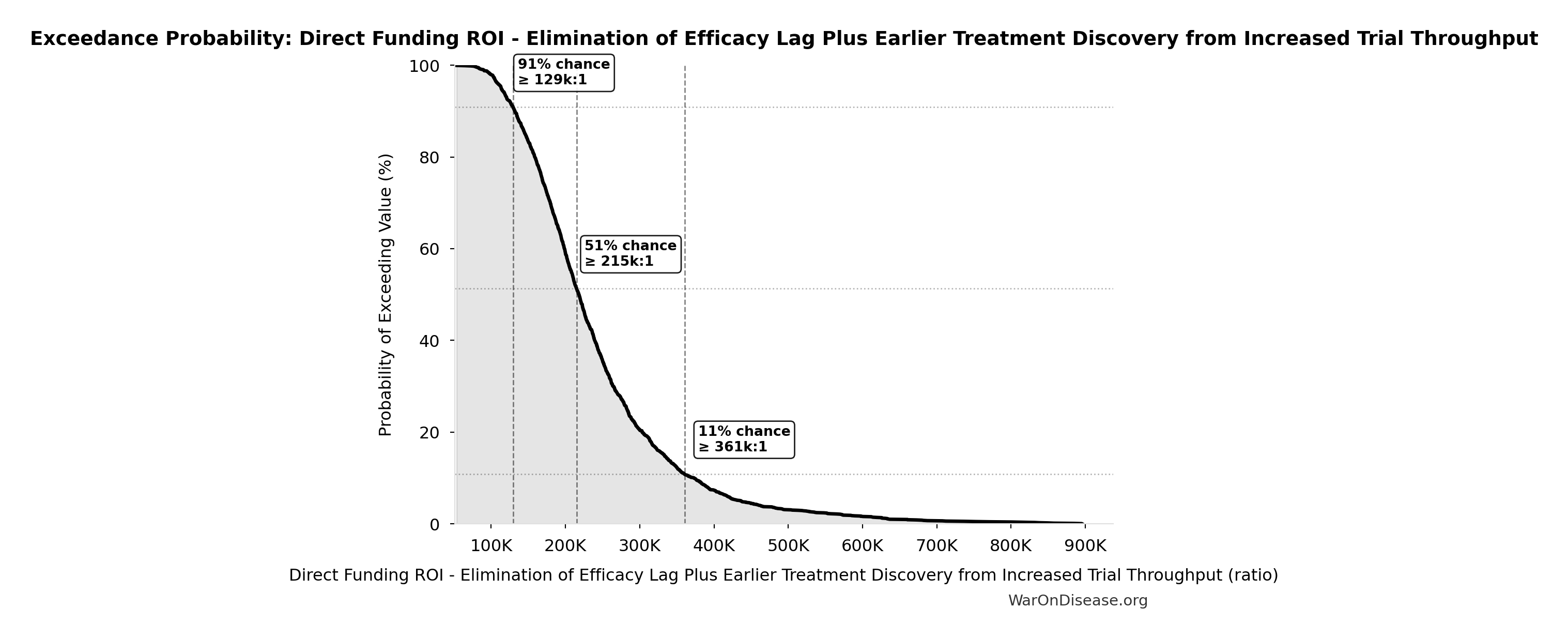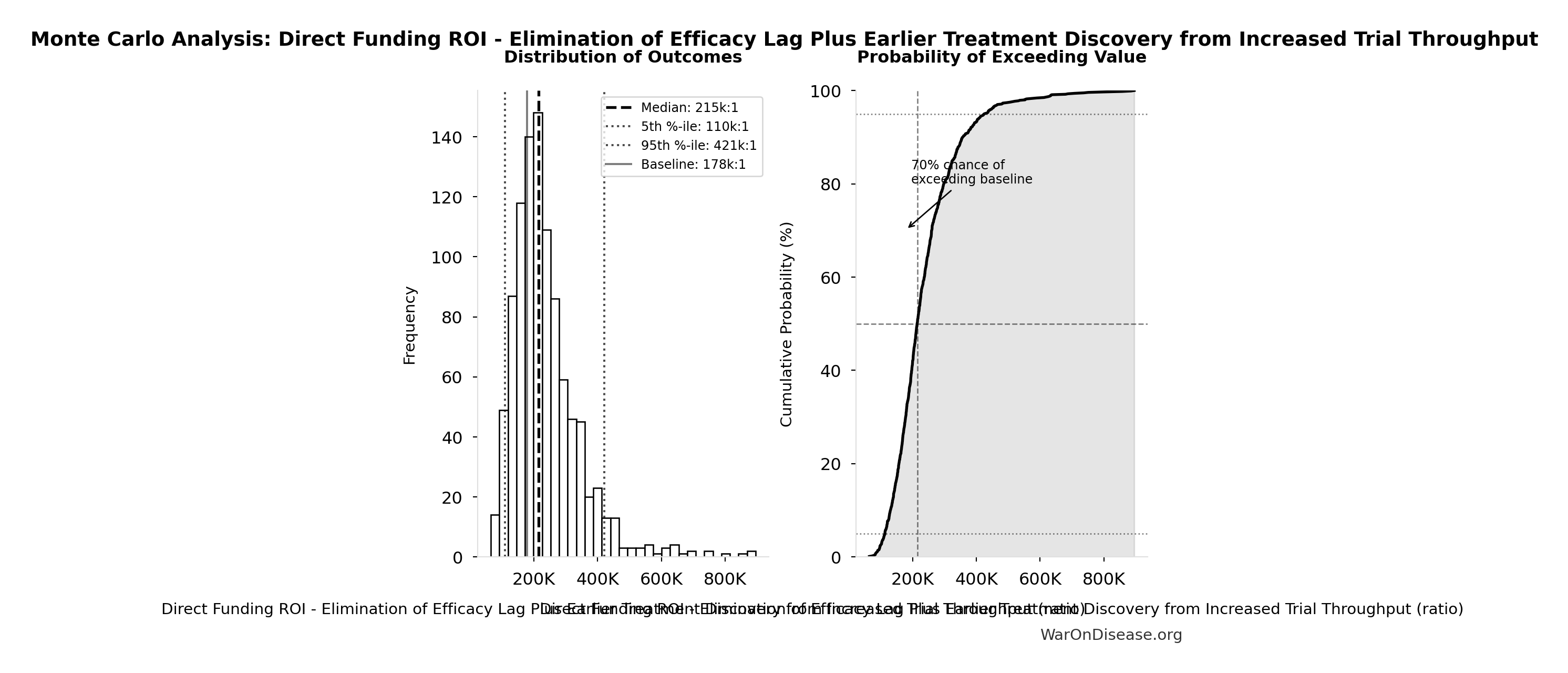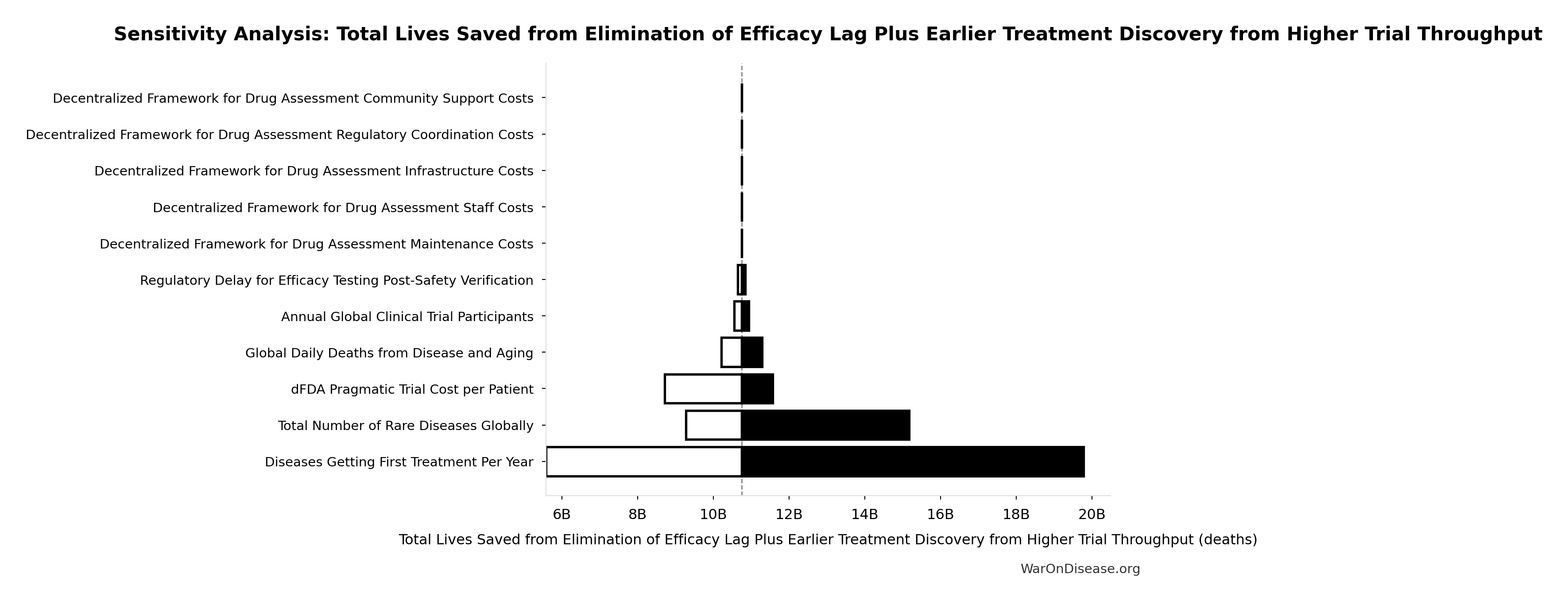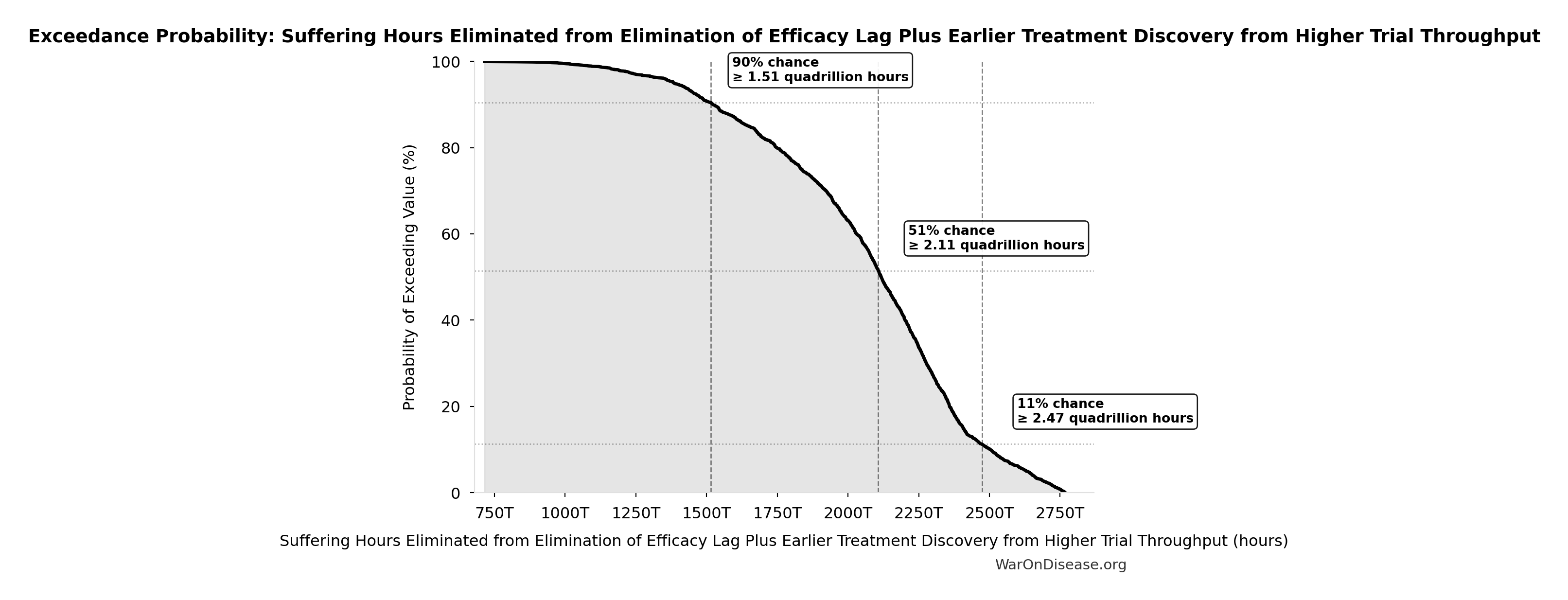 - Total DALYs from Elimination of Efficacy Lag Plus Earlier Treatment Discovery from Higher Trial Throughput 🔢: 565 billion DALYs